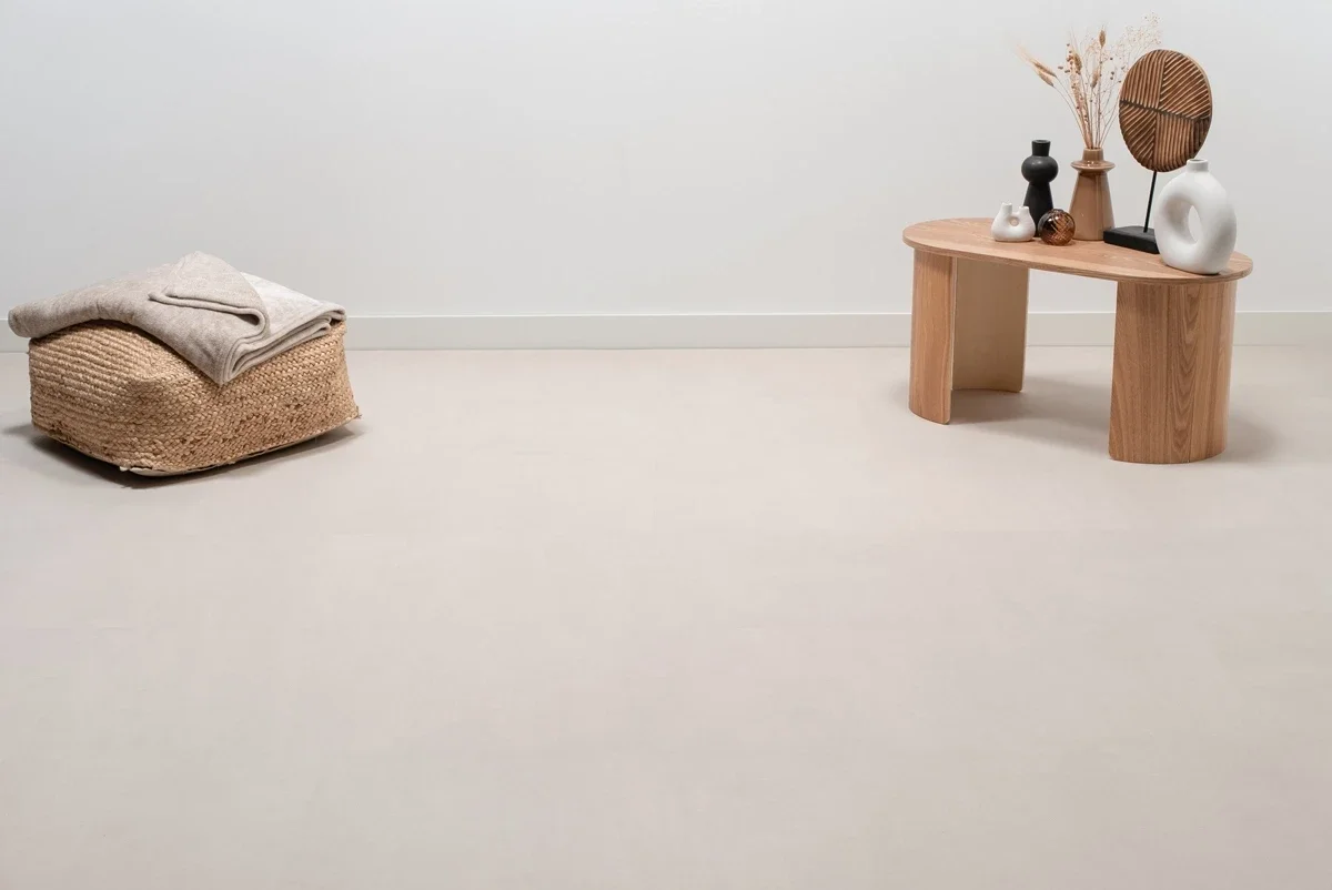 De Floer Tegel PVC – Betonlook Zand combineert de tijdloze uitstraling van beton met het gemak van PVC. Dankzij de unieke MEGAMAT afwerking en de zandkleurige tint voegt deze tegel PVC vloer een zachte, moderne sfeer toe aan je interieur. Met de voelbare structuur en royale afmetingen van 91,4 x 45,7 cm oogt hij als een authentieke betontegel, maar biedt hij alle voordelen van PVC.